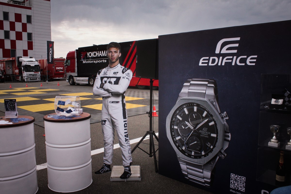 Лотерея проходила в специально установленной фотозоне. Фанаты высоких скоростей и передовых технологий запечатлевали себя с фигурой Пьера Гасли — французского гонщика «Формулы-1», члена команды Scuderia AlphaTauri, и испытывали удачу. Согласно условиям, зрители заполняли короткую анкету, а имена победителей лотереи были объявлены в инстаграм-аккаунте CASIO @casiowatchfactory по окончании соревнований – после того, когда чемпионы гонок взошли на пьедестал с логотипом CASIO EDIFICE.