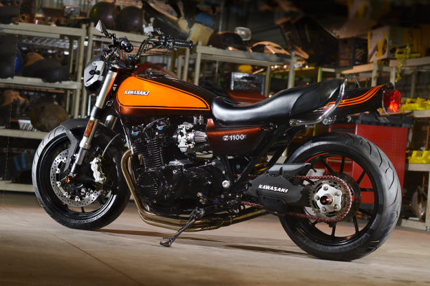 Ален Бернар из мастерской Santiago Chopper решил дать вторую жизнь Z1000 1977 года, наделив того недюжинной силой. Первым делом Ален взялся за двигатель, увеличив его рабочий объем с 1015 см3 до 1135 см3. Новые поршни увеличенного на 4 мм диаметра одновременно подняли степень сжатия с 8,7: 1 до 10,25: 1. Затем были установлены распредвалы Yoshimura, новые карбюраторы Mikuni 38 мм и электронное зажигание Dyna.