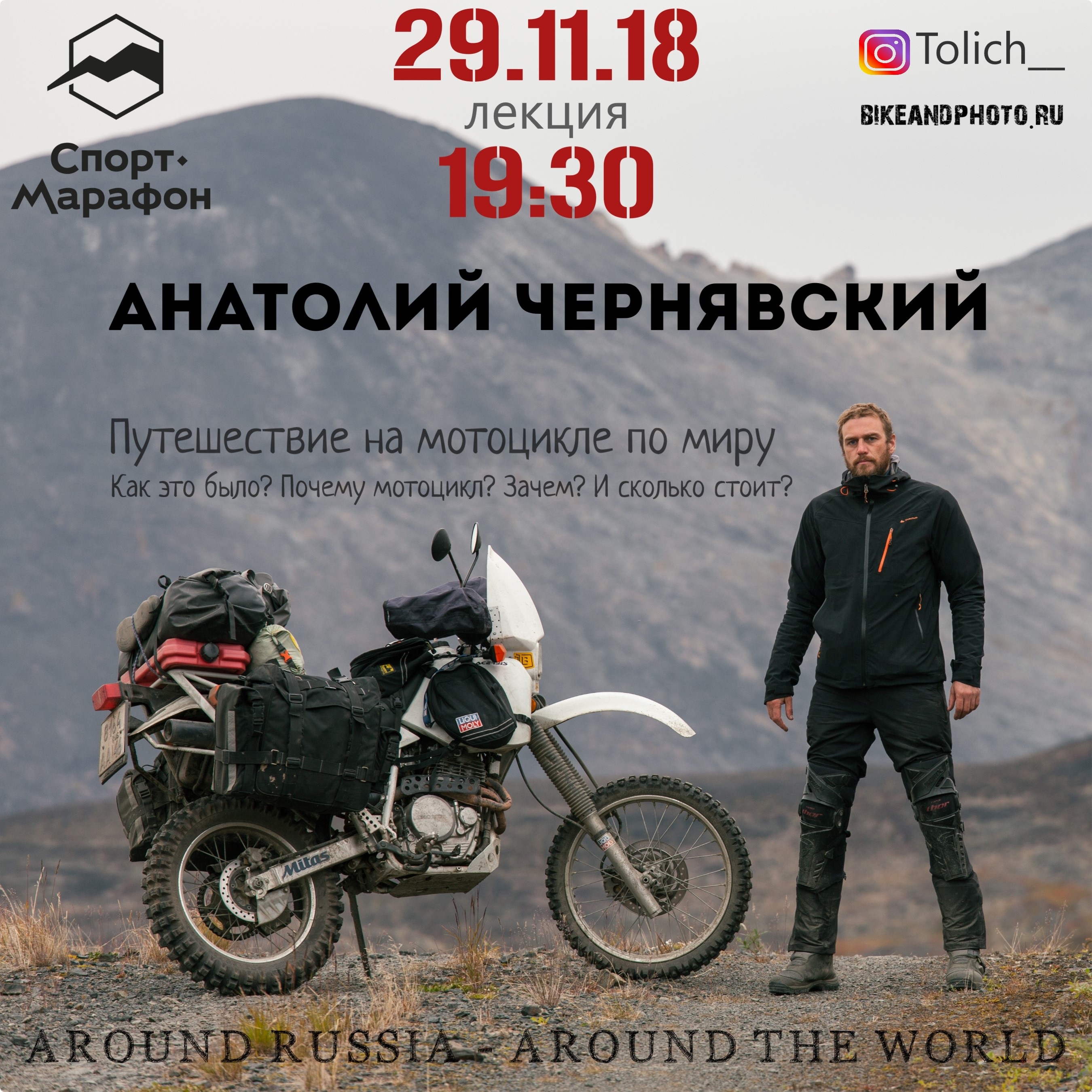 Анатолий Чернявский о путешествиях по России: “Если б я жил в другой стране или на другом континенте, Россия была бы для меня самым желанным направлением для мототуризма. Каждое направление – это новая природа, культура, люди. Найти туристическую информацию и составить маршрут сейчас несложно. Оцени количество свободного времени, подравняй потребности с возможностями, выбери дороги под свой мотоцикл и — вперед!”